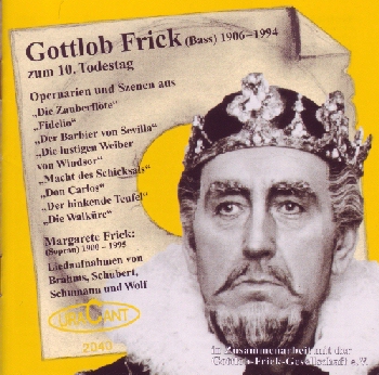 Bass (1914-1974) meist Erstveröffentlichungen zum 10. Todestag. Opernarien und Szenen aus “Die Zauberflöte”, “Fidelio”, “Der Barbier von Sevilla”... Anhang: Margarete Frick (Sopran) singt Lieder.